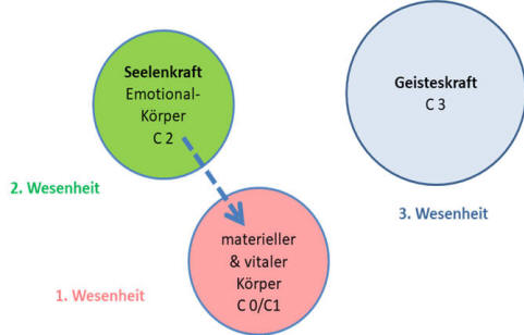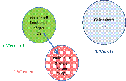 Die Seelenkraft ist die zweite dieser drei Wesenheiten und sie muss die 2. dieser 3 Wesenheiten sein, denn ohne sie kann Geisteskraft und Vitalitätskraft nicht vereint werden.